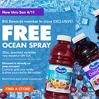 Big Rewards members can grab a Free 25 oz Bottle of Ocean Spray Drink at Big Lots stores through April 11, 2021. The coupon has been automatically loaded to your accounts. Visit one of their locations and redeem with your card at checkout. While supplies last.